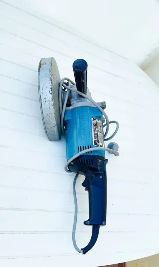 Amoladora Makita de gran tamaño. - Color azul y negro. - Mango auxiliar.