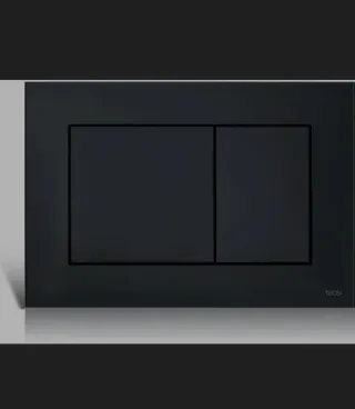 Placa de accionamiento para cisterna empotrada, acabado negro mate. - Diseño moderno con dos pulsadores. - Marca: TECE. -Botón Geberit x, cromado brillante, 220 x 150 x 5 mm.