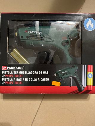 Pistola termoselladora de gas Parkside. - Modelo: PHKPG 150 A1 - Incluye barras de pegamento.