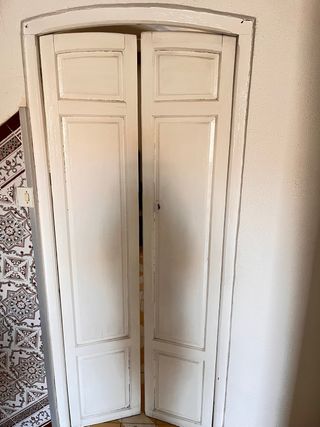 4 Puertas de madera de interior con acabado barnizado. Precio 30€, cada una Medidas 3 puertas de 2x70 1 puerta de 1,90x70 - Diseño clásico con paneles. - Tirador dorado incluido.