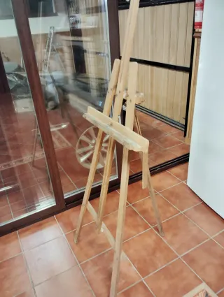 Atril de madera para artistas. Es un soporte robusto y ajustable para lienzos. - Material: Madera. - Diseño trípode. - Altura ajustable.