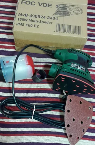 Lijadora multiusos Parkside PMS 160 - Potencia de 160W. - Modelo MxB-490924-2404. - Incluye colector de polvo y 3 lijas. PRODUCTO NUEVO ,ENVOS SEGUROS CON WALLAPOP