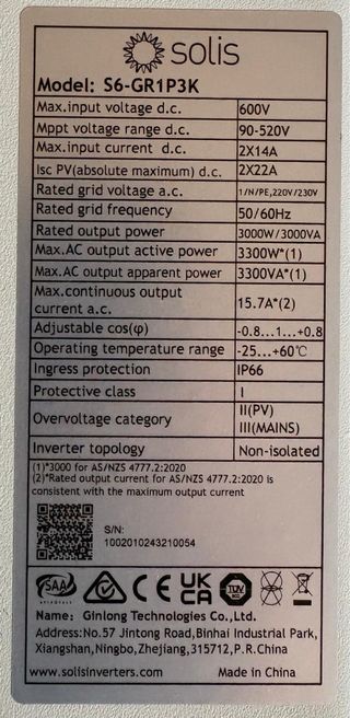 Inversor solar Huawei SUN2000-2KTL-L1. - Voltaje máximo de entrada DC: 600 V. - Rango MPPT: 90-560 V. - Corriente máxima de entrada DC: 12.5 A. - Corriente de cortocircuito PV: 18 A. - Voltaje máximo de batería: 600 VDC. - Corriente máxima de batería: 15 A. - Voltaje nominal de salida AC: 220/230/240 V. - Frecuencia nominal de operación: 50/60 Hz. - Potencia nominal de salida AC: 2 kW. - Potencia aparente nominal de salida AC: 2 kVA. - Corriente nominal de salida AC: 9.1/8.7/8.3 A. - Potencia aparente máxima de salida AC: 2.2 kVA. - Corriente máxima de salida AC: 10 A. - Factor de potencia: 0.8 (en atraso) - 0.8 (en adelanto). - Ra
