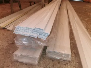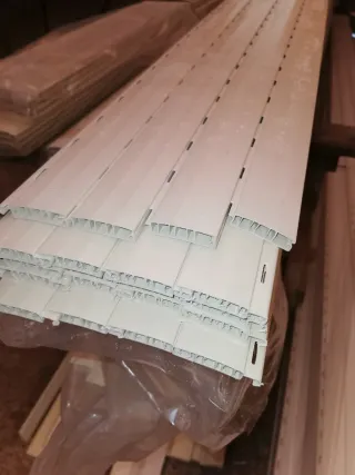 Lote de persianas de PVC y aluminio, listas para instalar. - Materiales: PVC y aluminio. - Color: Blanco. SE PUEDE FABRICAR A MEDIDA. 2.5 euros el metro cortado. Para varios metros. Se pueden fabricar persianas COMPLETAS A MEDIDA.