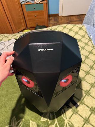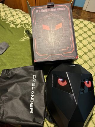 Mochila interactiva con diseño futurista y pantalla LED. へ - Marca: Crelander - Diseño geométrico - Pantalla LED con ojos rojos y mensajes personalizados. - En perfecto estado