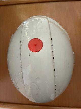 Casco de protección blanco de la marca BASF, con el lema We create chemistry. Incluye gafas de seguridad transparentes. - Casco de seguridad blanco. - Gafas de protección transparentes.