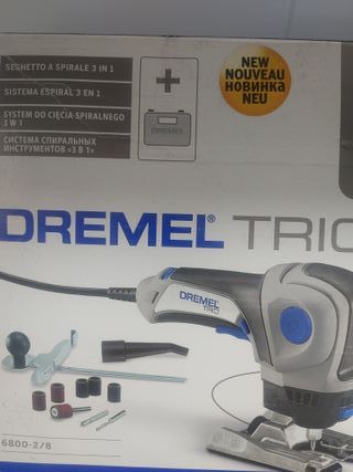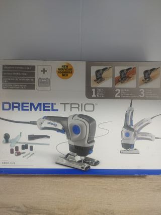Herramienta Dremel Trio 6800, completamente nueva.Multiherramienta ideal ,para todo aquel que realice trabajos manuales generales en el hogar. TRIO = LIJADO, FRESADO Y PULIDO. Dremel TRIO tiene un sistema en espiral 3 en 1 que permite cortar, lijar y fresar con una misma herramienta. Esta herramienta versátil, compacta y ligera es muy potente.Dremel TRIO ofrece una excelente ergonomía, una empuñadura de 2 posiciones y velocidad variable que garantiza un óptimo ritmo de trabajo en distintos materiales. - Incluye maletín de transporte. - Incluye accesorio de aspiración. - Incluye accesorio para corte. - Incluye accesorios de lijado.