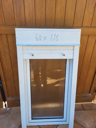 Ventana de aluminio con persiana enrollable. Las medidas son 60 cm de ancho por 1.15 metros de alto. Es muy limpa. - Marco de aluminio blanco. - Cristal translúcido. - Persiana enrollable.