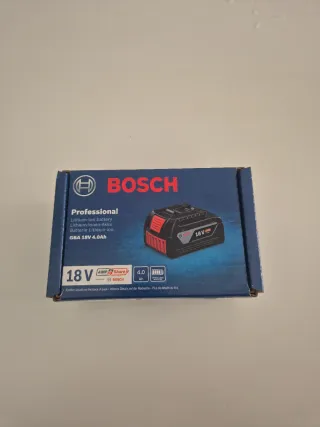 Batería Bosch Professional GBA 18V 4.0Ah original en caja y con precinto intacto. - Nuevas, en su caja original sin abrir. - Tecnología Lithium-Ion. - Compatibles con herramientas Bosch Professional de 18V. Precio no negociable