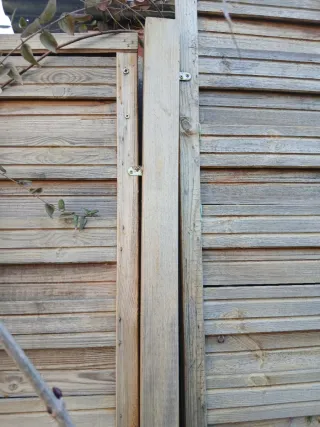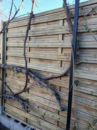 Se venden 10 paneles de ocultación de madera, ideales para delimitar espacios o añadir privacidad. Necesitan tratamiento lasur. Se incluyen los postes. 45 euros la unidad b - Material: Madera. - Cantidad: 12 unidades. - 1,80 x 1,80