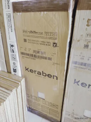 Se venden azulejos de la marca Keraben, modelo Future Beige y Mixt Blanco ( Beige clarito) - Color: Future Beige. - Medidas: 25x70 cm. - Tipo: Revestimiento / Wall Tiles. - Cuerpo: Pasta Blanca / White Body. - Cantidad: 4 futyre beige cajas 8 mixt blanco Cada caja 1,23 M2 Sobrante de reforma. Las cajas un poco sucias pero el azulejo en perfectas condiciones. 10€ cada caja.