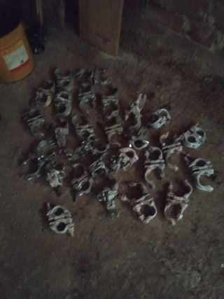 Conjunto de husillos de nivelación con abrazaderas giratorias para andamios. HUSILLOS NIVELACION ANDAMIO MACIZO 500 MM. DISPONGO DE 12 UDS. Brida o abrazadera de acero giratoria para empalme de modulos de andamio tradicional, diametro 48 mm. 27 UDS. CONJUNTO POR 140€