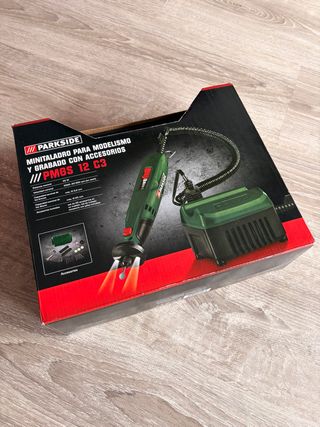 Minitaladro PARKSIDE modelo PMGS 12 C3 para modelismo y grabado. - Potencia nominal: 20 W - Velocidad nominal: 5000-20000 rpm - Capacidad nominal de pinza: ø 3,2 mm - Incluye accesorios. - utilizado dos veces - no se hacen envíos
