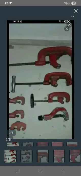 Conjunto de siete cortatubos de color rojo. Solo la grande vale nas de 200 euros - Herramientas para corte de tubos. - Fabricados en metal resistente.