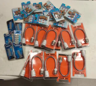 Lote variado de consumibles para instalaciones eléctricas. - Conectores rápidos para cables. - Adaptadores para bombillas. - Terminales eléctricos.