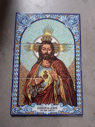 Azulejo del Corazón de Jesús en tres piezas.Sin estrenar.Medidas 28X42.