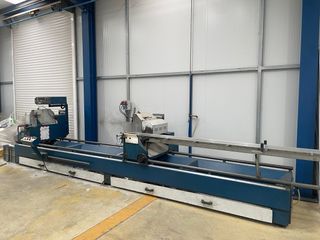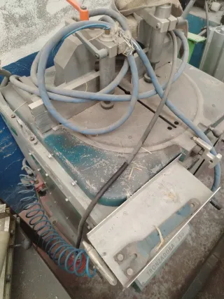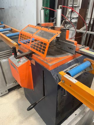 Se vende una cortadora de aluminio para ventanas. Está en buen estado, aunque muestra señales de uso. En funcionamiento - Ideal para cortar aluminio para ventanas. - Dispone de panel de control - con transportadora de rodillos 3995€