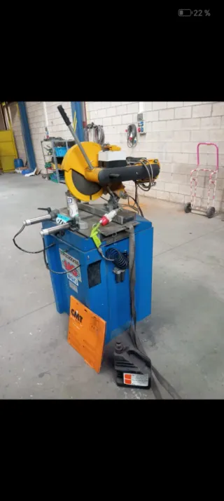 Tronzadora MG B-200 en buen estado, ideal para cortar metal. Tornillo de sujeción: Giratorio hasta 90°, perfecto para cortes a inglete. Alimentación: Originalmente diseñada para corriente trifásica de 380 V, pero adaptada para funcionar con 220 V mediante la instalación de un condensador. (Se puede revertir a 380 V retirando el condensador). Incluyo 10 discos nuevos para cortar aluminio, acero, etc. (valor 30/40 euros cada uno) La máquina es muy pesada y se entrega junto con su mesa metálica con ruedas, muy práctica para moverla. No realizo envíos por motivos de peso. industrial, festool, makita, dewalt, cnc, hierro, metal