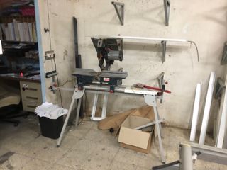 Se vende equipo para taller de aluminio. - Tronzadora MG TLQ-350-A . Con carro medidor milímetro .Funciona a 220 v - Compresor de aire 100 litros funcióna a 220v - Mesa extensible de montaje MG - Pulmón neumático.