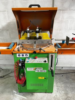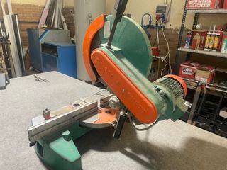 Tronzadora profesional para aluminio MG TLG-350, fabricada en Barcelona. Máquina industrial muy robusta, ideal para carpintería de aluminio, talleres o fabricación de estructuras. Características: Disco: 350 mm Motor: 2 CV Velocidad: 3.000 rpm Mordazas neumáticas de sujeción Corte preciso para perfiles de aluminio Construcción industrial muy sólida Año fabricación: 1997 La máquina funciona correctamente y puede probarse sin problema. Peso aproximado 160 kg, máquina muy estable. Perfecta para talleres de aluminio, carpintería metálica o profesionales que busquen maquinaria robusta.