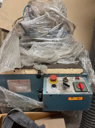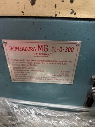 Tronzadora de la marca MG, modelo TL-400-A. Ideal para trabajos de corte. - Color azul y amarillo. - Panel de control con botones. - Incluye cableado y conexiones. Tronzadora de aluminio marca M.G. Modelo: TL-400-A en perfecto estado totalmente revisada y verificada, 380v. Esta maquina tiene muchos accesorios extras: se le han cambiado los repuestos de la maquina, esta totalmente revisada, si lo desean llamenme al 606936657 le informaré más detalladamente.