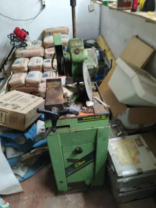Se vende tronzadora de disco para cortar hierro. Es una máquina robusta y aparentemente bien conservada, ideal para trabajos de metal. - Marca: Desconocida - Tipo: Tronzadora de disco - Material: Hierro - Ideal para cortar metal