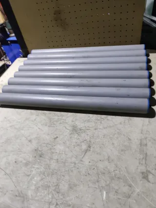 Se vende Segundamano lote de 8 rodillos PVC con rodamientos en ambos lados con orificio en el eje M8. Medida del rodillo 50x 580mm medida total eje 600mm. Disponemos de más medidas diferentes así en hierro . Disponemos de amplia gama de maquinaria como tronzadoras aluminio ,sierras de cinta.molinos de plástico.compresores,motores,extractores ventilacion,está terias..Y mucho más somos empresa de compra venta de maquinaria Nueva y Segundamano. Cam100@