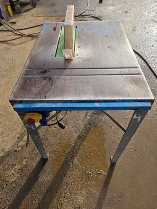 Mesa de corte madera con disco de sierra. Marca: Alba, Modelo: TLE-3M. Medidas Largo: 95 cm, Ancho: 65 cm y Altura: 82 cm. Corriente Monofásica: 220 v. Peso: 58 kg. En perfectas condiciones de uso y mantenimiento. Ideal para la construcción, encofrador, mesa corte encofrador, tronzadora, tronzadora de madera, carpintero, sierra encofrador, corte de madera, carpintería, obras, reformas, etc.… - Disco de corte incluido. - Protector de disco. - Estructura metálica azul.