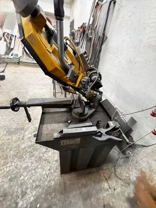 Tronzadora MG B-200 en buen estado, ideal para cortar metal. Tornillo de sujeción: Giratorio hasta 90°, perfecto para cortes a inglete. Alimentación: Originalmente diseñada para corriente trifásica de 380 V, pero adaptada para funcionar con 220 V mediante la instalación de un condensador. (Se puede revertir a 380 V retirando el condensador). Incluyo 10 discos nuevos para cortar aluminio, acero, etc. (valor 30/40 euros cada uno) La máquina es muy pesada y se entrega junto con su mesa metálica con ruedas, muy práctica para moverla. No realizo envíos por motivos de peso. industrial, festool, makita, dewalt, cnc, hierro, metal