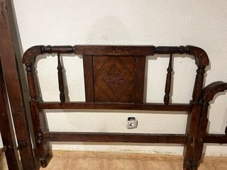 Conjunto de cabeceros de cama antiguos de madera oscura con detalles tallados. Precio a convenir - Diseño clásico con postes torneados. - Panel central con incrustaciones decorativas. -Mármol original - Estilo rústico y elegante.