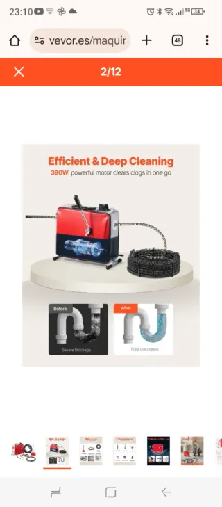 Desatascador eléctrico profesional para tuberías, ideal para limpiezas eficientes y profundas. - Diseño compacto y portátil. - Incluye cable de desatasco.