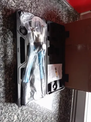 Herramienta para prensar tuberías de fontanería. Ha trabajado mucho funciona perfectamente, pero recomendable un mantenimiento. De ahí su bajo precio - Diseño ergonómico. - Mecanismo de acción manual. - sin cargador, baterías ni cunas para tubo