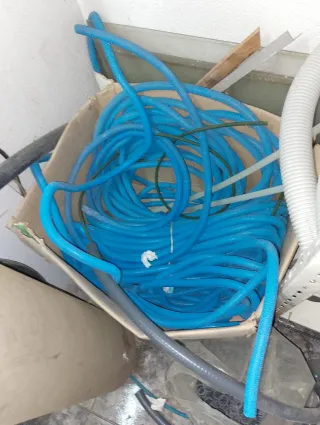 Tubería de polietileno de alta densidad. Es de la marca BAXI, con medidas de 16x1,8 mm. La tubería se ve en buen estado, limpia y en perfecto orden. Cantidad aproximada 60m - Marca: BAXI - Material: Polietileno de alta densidad PE-X - Medidas: 16x1,8 mm