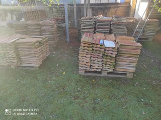 Tejas usadas. Son de color rojizo y muestran señales de uso y desgaste. - Aproximadamente 300 antiguas. - Fabricadas en Alicante. - Ideales para proyectos de restauración o decoración.