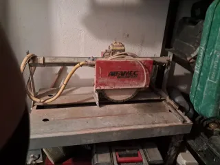 Mesa de corte para piedra con bandeja de agua integrada. Ideal para trabajos de construcción y reformas. - Bandeja de agua para refrigeración. - Estructura metálica robusta.