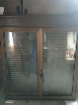 Ventana de aluminio en color marrón. Incluye persiana. Segunda mano, medidas en fotos.