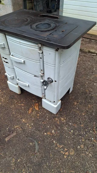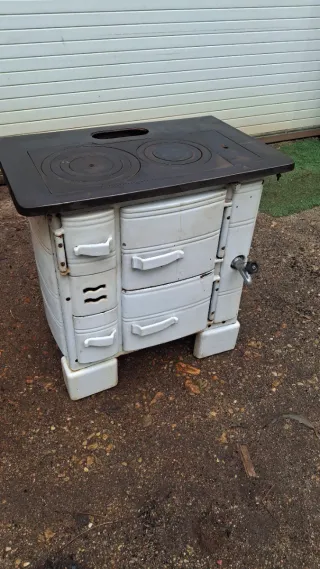 Cocina de leña vintage en HIERRO FUNDIDO ideal para decoración aunque también se puede usar . Lleva tiempo parada por lo que necesita algún mimo. Pieza única. Ideal para decoración 80cm ancho x 50cm fondo( la plancha) y 75cm alto