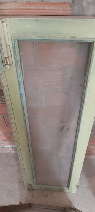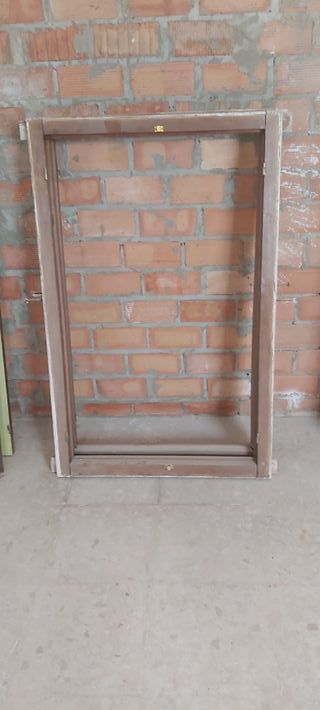 Ventana de interior con su marco. En color oscuro, madera perfecta, verde claro, pintura al agua de fácil remover. Medida 125x80 cm del marco, hoja 115x34.