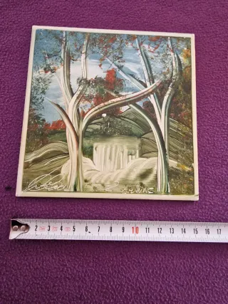 Azulejo cerámica decorativo con un paisaje pintado a mano de una cascada y árboles. - Medidas en las fotos - Diseño artístico único. - Ideal para coleccionistas o decoración. - Firmado por el artista.