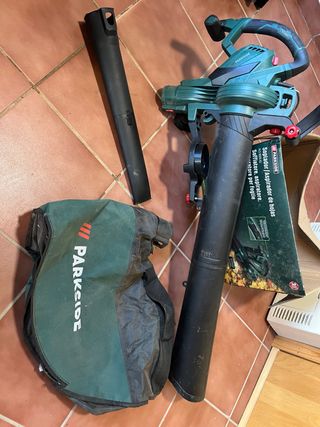 Soplador y aspirador de hojas Parkside PLS 3000 A1. - Incluye bolsa de recolección. - Incluye tubo de soplado. - Color verde y negro. La bolsa tiene una pequeña rotura, que supongo que se arreglará cosiéndola.