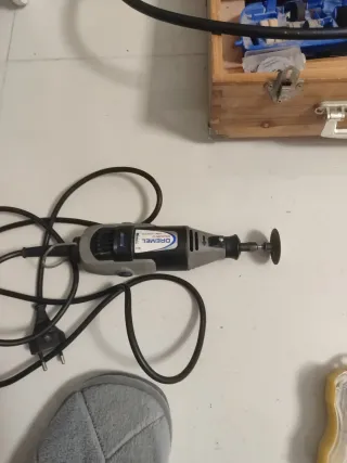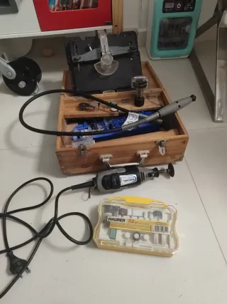 Se vende Dremel con su maletín de madera y accesorios. - Incluye Dremel con cable y enchufe. - Maletín de madera con cierres. - Accesorios variados para Dremel.