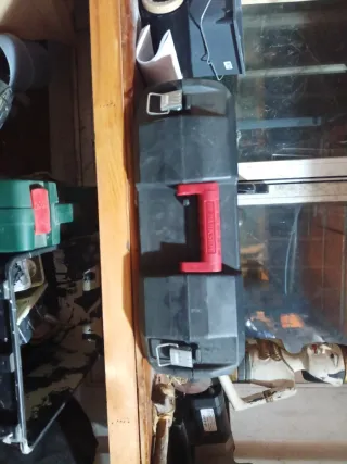 Maletín de plástico resistente para herramientas. - Color negro con detalles en rojo. - Cierre de seguridad. - Asa para transporte.