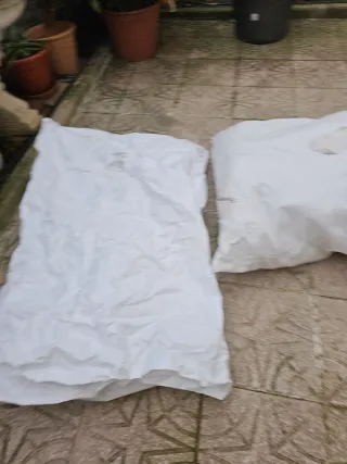 Se venden bolsas grandes, ideales para guardar o transportar materiales diversos. Son resistentes y prácticas. - Color blanco. - Material de tela. - Cierre superior.hoy más de 50 sacos todo por 35€.cada uno mide 1,40×1 metro.