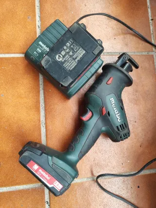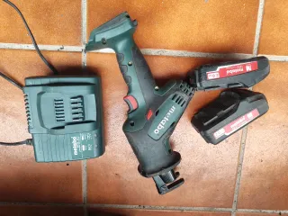 Sierra sable inalámbrica Metabo de 18V. - Batería Metabo Li-Power 18V 2.0 Ah. - Cargador Metabo ASC 30-36 (hilti sr4, Sr6, milwaukee, bosch, Makita, Dewalt)