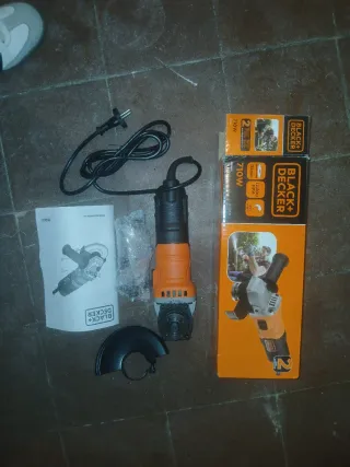 Radial Black+Decker de 710W con disco de 115mm. Incluye manual y protector. - Potencia: 710W - Diámetro del disco: 115mm - Velocidad: 12,000 RPM - Incluye manual de instrucciones - Protector de seguridad