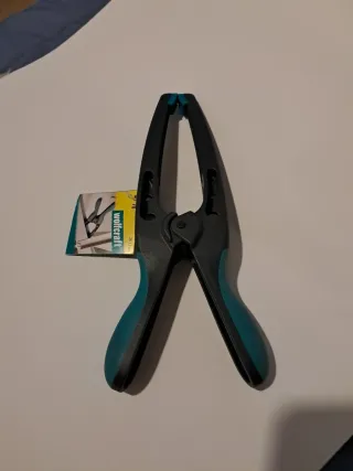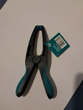 Pinza de sujeción de la marca Wolfcraft, ideales para trabajos de bricolaje y manualidades. - Color: negro y turquesa. - Material: plástico resistente. - Diseño ergonómico para un agarre cómodo. PInza con mordazas acabadas en punta MT 70 de la marca Wolfcraft. Modelo: MT 70 (referencia 3633000). Características: Brazos largos con una profundidad de sujeción de 100 mm y puntas estrechas para espacios limitados. Material: Plástico reforzado con fibra de vidrio. Ancho de sujeción: Hasta 70 mm.