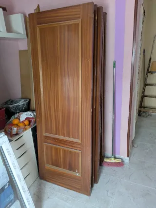 Puerta maciza para interiores con acabado en madera. Medidas 72cm de ancho y 205cm de alto Con marco 88cm de ancho - Color marrón. - Diseño liso. 3 puertas abren a derechas 3 puertas abren a izquierdas Precio por puerta 60€