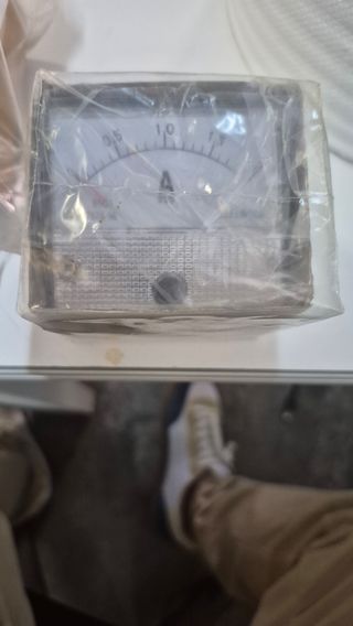 Amperímetro analógico para medir corriente eléctrica. - Escala de 0 a 1 Amperio (A). - Marco cuadrado. - Incluye dial y puntero.