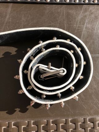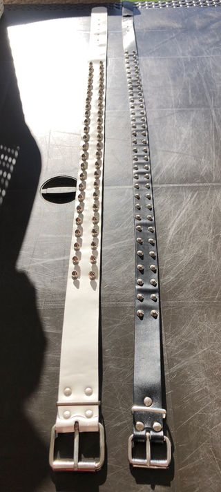 Cinturón blanco mide 105 cm x 4 cm y el negro 109 cm x 3 cm