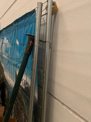 Valla de obra metálica, ideal para delimitar espacios o asegurar zonas de construcción. se venden las 15 vallas, por un precio de 5 euros cada una, en caso de querer las piedras tambien se venderia todo por 100 euros